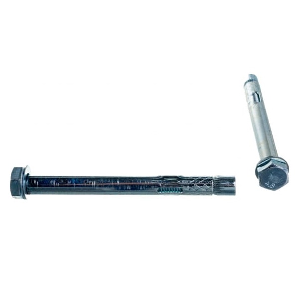 Анкерный болт HBM 12x120 оцинкованный от бренда Tech-KREP представляет собой надежное крепежное изделие, предназначенное для прочной фиксации конструкций и оборудования к плотным строительным основаниям, таким как бетон, полнотелый кирпич и натуральный камень. Данный анкерный болт применяется в строительстве, при монтаже инженерных систем, установке металлоконструкций, ограждений, навесного оборудования, а также в производственно-промышленных и бытовых условиях, где требуется устойчивое и безопасное крепление. Конструкция анкера включает в себя болт с метрической резьбой, распорную металлическую гильзу, шайбу и шестигранную гайку. Принцип работы заключается в том, что при закручивании гайки болт втягивает конус внутрь гильзы, тем самым расширяя ее и плотно фиксируя в отверстии основания за счет распора стенок.