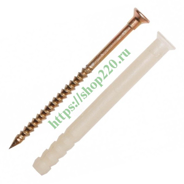 Нейлоновый распорный дюбель для быстрого монтажа со стальным оцинкованным гвоздем-шурупом с увеличенным подголовником.
