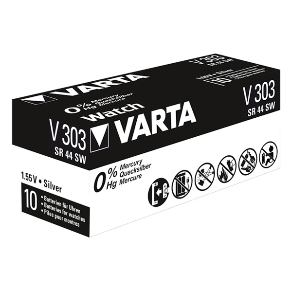 Батарейка дисковая таблетка VARTA V303 (228/280-08/SR44SW/357/01B/357E/357F/357/303/SR44) серебряно-цинковая, для часов 00303101111