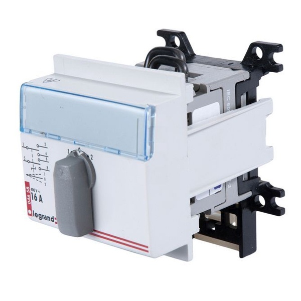 Этот коммутатор, от известной компании-производителя Legrand, представляет собой трехфазный переключатель с ручным управлением для подключения вольтметра к измеряемой цепи. С его помощью можно измерить фазное и линейное напряжение не переключая цепи вольтметра. Номинальный ток составляет 16 А, а номинальное напряжение измерений – 400 В.