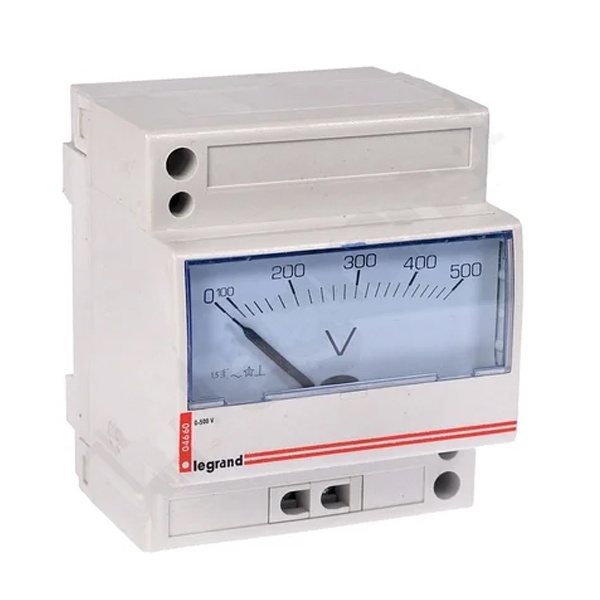 Аналоговый вольтметр от французской компании Legrand представляет собой универсальный прибор для измерения напряжения переменного и постоянного тока в электрической цепи. Это компактное устройство с классом точности в 1,5% для переменного и 4% постоянного напряжения, имеет стрелочный указатель, который отражает измеряемое значение на шкале. Оно отслеживает любые колебания напряжения в сети. Среди недостатков можно выделить большую погрешность прибора и сложность интерпретации значений.