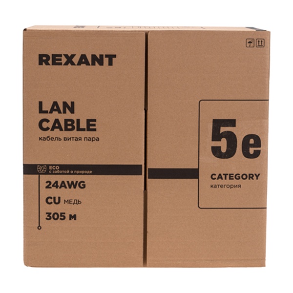Сетевая медная витая пара неэкранированная UTP indoor 2 одножильных пары категории 5е для интернета 01-0023-R