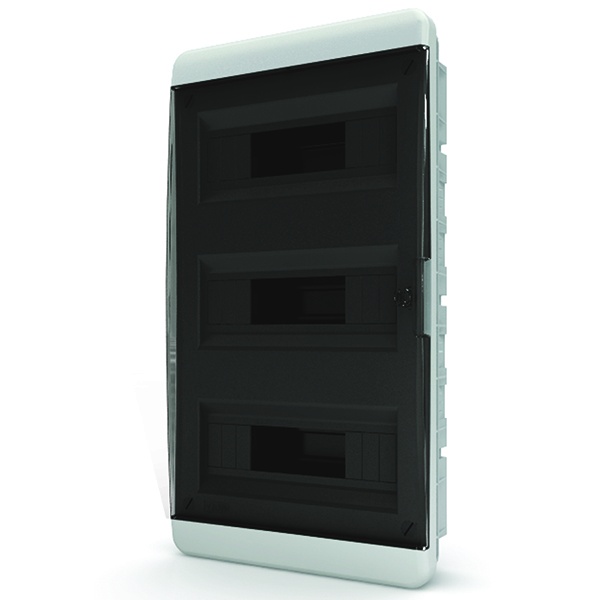 Электрический шкаф Текфор, скрытого монтажа, трехрядный на 36 модулей, с прозрачной черной дверцей, дин-рейка, нулевая и земляная шина 01-02-061