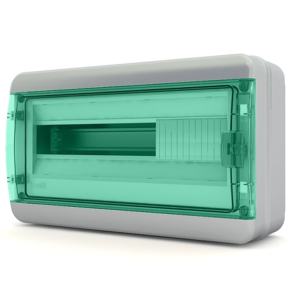 Влагозащищенный электрический шкаф Текфор, накладного монтажа, 18 модулей, с прозрачной зеленой дверцей 01-03-002