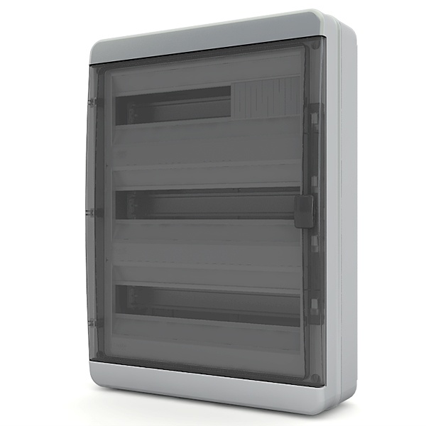 Влагозащищенный электрический шкаф Текфор, накладного монтажа, трехрядный на 54 модуля, с прозрачной черной дверцей 01-03-061