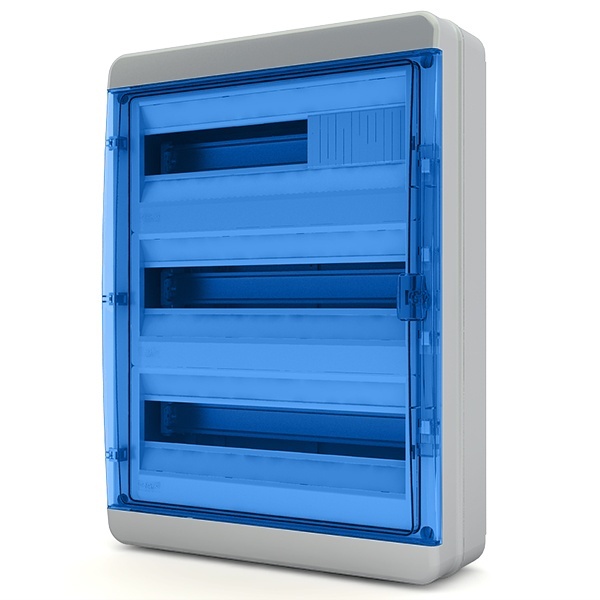 Влагозащищенный электрический шкаф Текфор, накладного монтажа, трехрядный на 54 модуля, с прозрачной синей дверцей 01-03-064