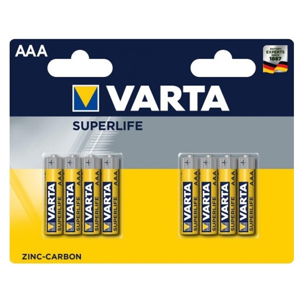 Углеродно-цинковые элементы питания мизинчиковые Varta Superlife, типоразмера ААА/R03, упаковка 8 штук 4008496886654