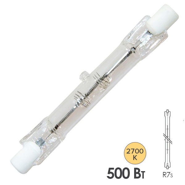 Галогенная линейная прозрачная лампочка Ферон с цоколем R7s, мощностью 500 Ватт 02011