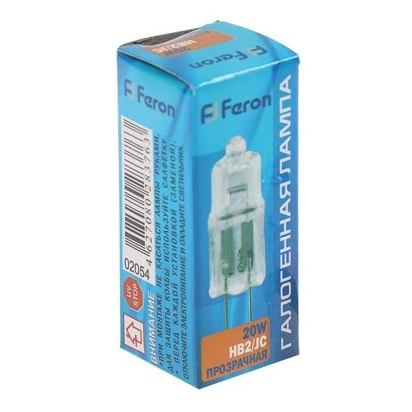 Лампа галогенная (КГЛ) капсульная FERON HB2, JC/G4.0 20W 12V, белый теплый, 33*9мм