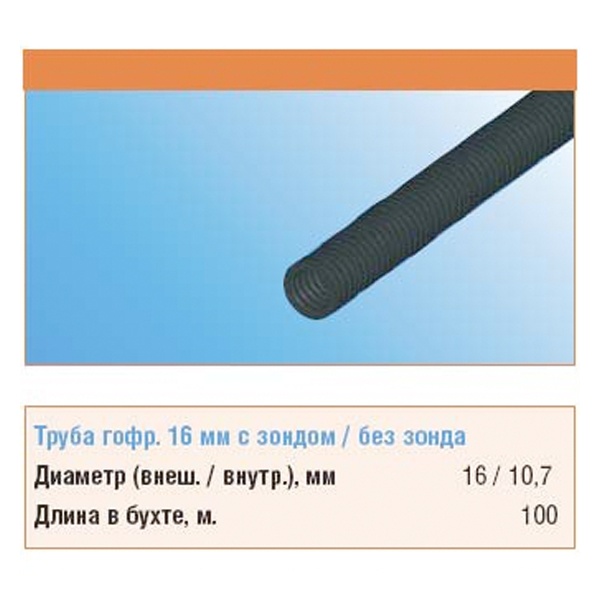 Гофра ПНД со стальной протяжкой (зондом) 16мм для кабеля, провода применяется:для скрытой проводки, например для закладки в потолках, в стенах (в бетон), в полу.