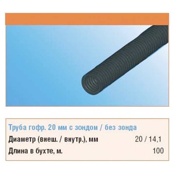 Гофра ПНД со стальной протяжкой (зондом) 20мм для кабеля, провода применяется:Для скрытой проводки, например для закладки в потолках, в стенах (в бетон), в полу.