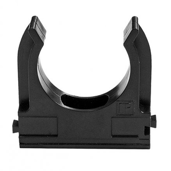 Черный пластиковый крепёж-клипса ПВХ для гофрированных и гладких труб диаметром 16мм PR.02716ч