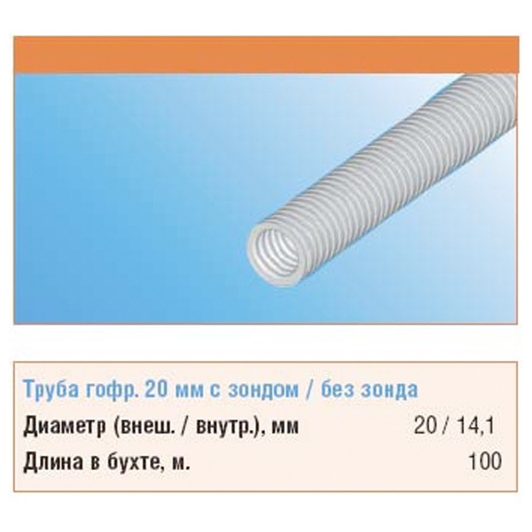 Наименование: Труба гофрированная ПВХ Строитель 20 мм гибкая с протяжкой серая (гофра для кабеля)
