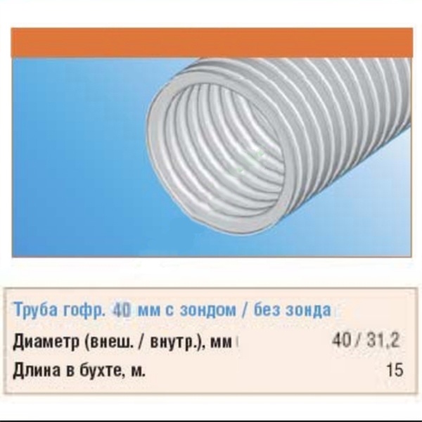 Электрическая пластиковая гофра ПВХ 40мм с зондом для прокладки кабеля и провода PR.034015
