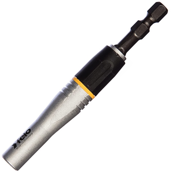 Промышленный магнитный битодержатель для ударных инструментов компании Felo серии 038 Impact для бит 1/4 дюйма предназначен для зажима насадок с приводом с наружным шестигранником 1/4 дюйма. В этой конструкции держателя предусмотрена эластичная зона из мягкого металла, которая гасит очень высокие моменты во время завинчивания. Это позволяет значительно продлить срок службы инструмента. Длина держателя составляет 95 мм. Он имеет профессиональное назначение, и совместим с дрелью, винтовертом, гайковертом и шуруповертом. Битодержатель предназначен для монтажа и демонтажа, сверления и фиксации. Изделие рассчитано на долгий срок службы и рекомендуется для интенсивной работы и массового производства. Держатель бит имеет гарантию 2 года. Страна производства инструмента – Германия.