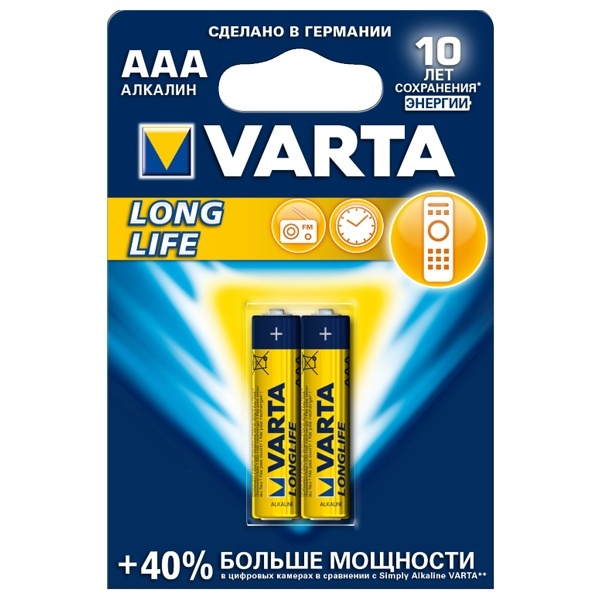 • Батарейка Varta Longlife AAA (упаковка 2шт) 04103113412