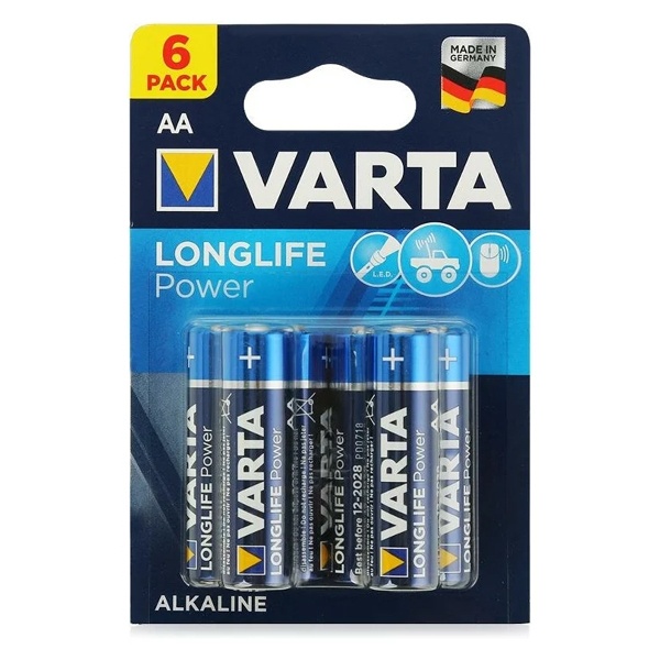 Алкалиновые элементы питания пальчиковые Varta Longlife, типоразмера АА/LR6, упаковка 6 штук 4008496640836