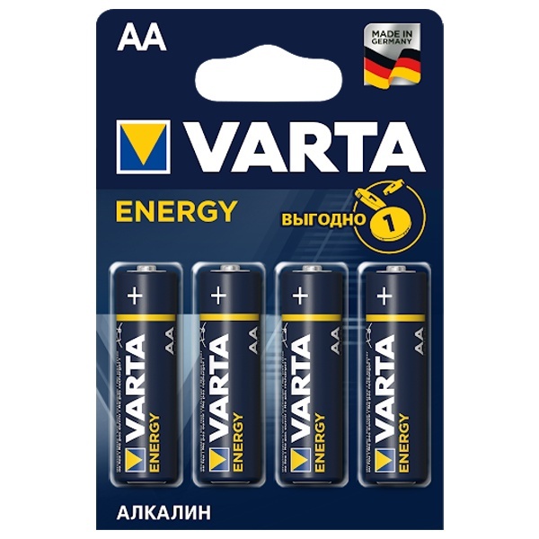 Алкалиновая батарейка Varta Energy типоразмера АА/LR6, упаковка 4 штуки 04106213414