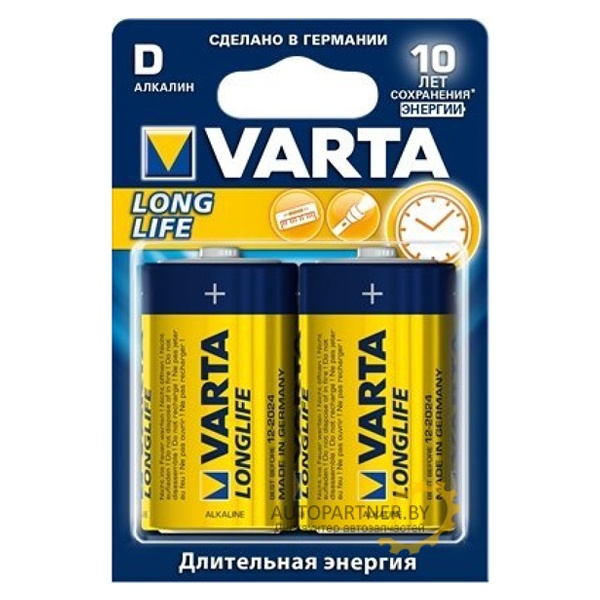 04120113412 Батарейки Varta D LR20 1.5V Longlife (упаковка 2шт) 4008496847235 фото 1