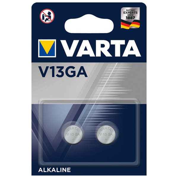 Алкалиновые (щелочные) дисковые батарейки таблетка Varta типоразмера V13GA (LR44/A76/KA76), упаковка 2 штуки 04276101402
