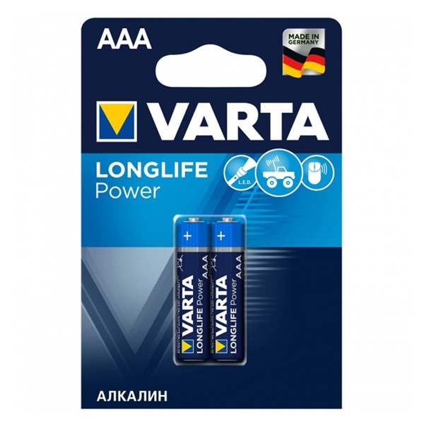 Алкалиновые элементы питания мизинчиковые Varta Longlife Power, типоразмера ААА/LR03, упаковка 2 штуки 04903113412