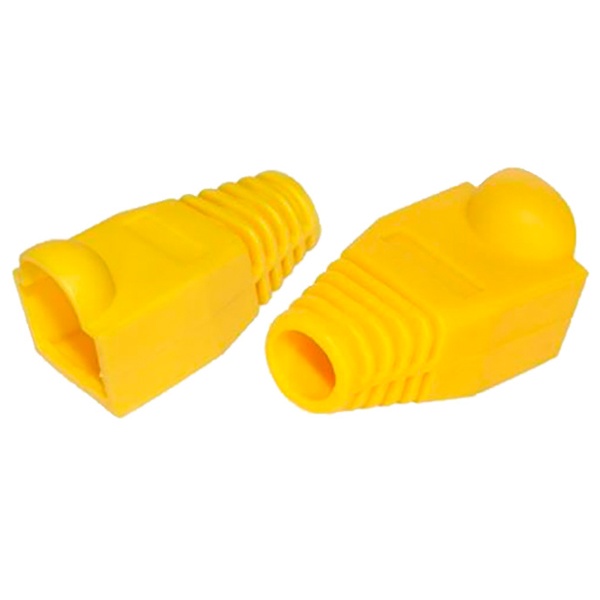 Колпачок RJ-45 желтый REXANT предназначен для дополнительной защиты места соединения разъема RJ-45 (8P8C) и информационного кабеля при построении телефонных и компьютерных сетей. Защитный колпачок оберегает кабель от перегиба в месте соединения с разъемом, а также защелку коннектора от повреждения, что значительно увеличит срок службы готового шнура. Чаще всего он применяться с витой парой диаметром до 6 мм. Данный колпачок изготовлен из пожаростойкого и эластичного желтого полипропилена и обладает высоким уровнем надежности при эксплуатации телекоммуникационного оборудования. Колпачок совсем не увеличивает габариты разъема, и позволяет использовать его в информационных шкафах с высокой плотностью портов. Использование цветных колпачков допускает возможность выделения определенных проводов, т.е. служит маркером кабеля.