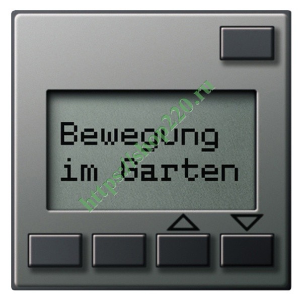 Информационный дисплей 2 принимает телеграммы и предоставляет возможность показа (ЖК-дисплей) трех программируемых текстов и значений. Должны быть запрограммированы до 12 страниц с 1, 2 или 4 строками текста. Каждой строке можно присвоить определенную функцию (переключение, регулировка света, показ значений и т.д.). На дополнительной странице тревоги можно управлять 12 сообщениями тревоги. Сообщению тревоги может быть присвоена акустическая и/или визуальная функция тревоги. 4 кнопки предназначены для листания вверх и вниз, квитирования сообщений или, в зависимости от проектирования, для отправки телеграмм.