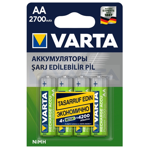 Аккумулятор никель-металлогидридный. Типоразмер АА. Емкость 2700 мАч. Идеально подходит для приборов с высоким потреблением энергии.