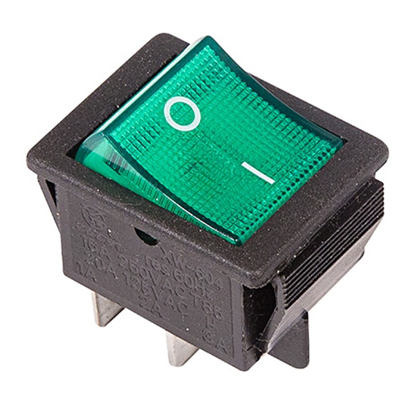 Выключатель клавишный 250В 16А (4с) ON-OFF зел. с подсветкой (RWB-502 SC-767 IRS-201-1) блист. Rexant 06-0304-B