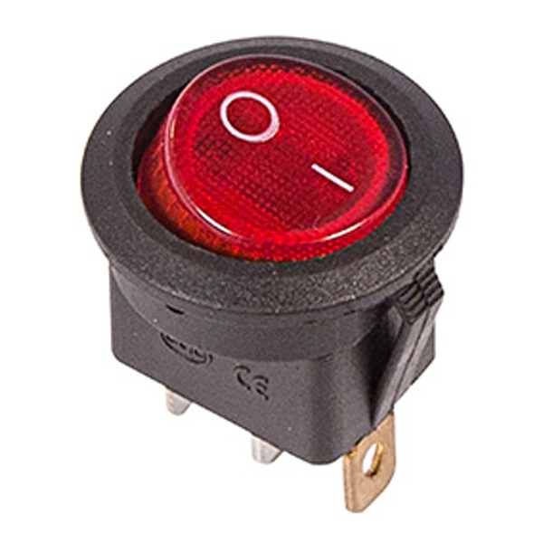 Красный клавишный выключатель Рексант круглой формы на 2 положения 06-0311-B