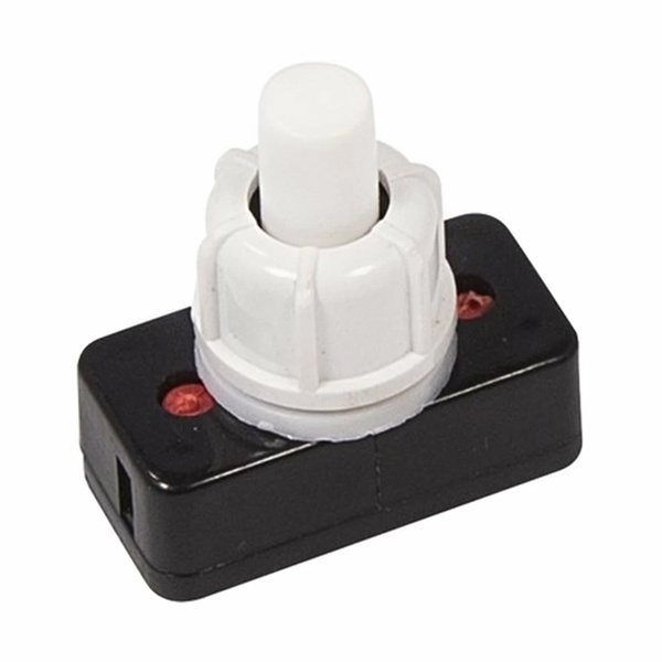 Кнопочный выключатель торгового знака Rexant представляет собой компактный элемент, который широко используется в быту и на производстве и предназначен для коммутации электрических цепей переменного тока напряжением до 250 Вольт. Принцип его действия состоит во включении и выключении питающего провода при нажатии на кнопку. Данная модель используется в качестве комплектующего изделия для настольной лампы и имеет 2 положения с фиксацией: On/Off. При этом из рабочего состояния устройство выводится только при повторном нажатии. Внешне кнопка-выключатель заключена в пластиковый корпус белого цвета. Ее механическая износостойкость составляет 10 000 циклов. Номинальный ток для модели не превышает 2 Ампер. Установочный диаметр достигает 10 мм. Монтаж производится гайкой на плоских панелях толщиной от 0.5 до 3 мм. Количество контактных групп – 1, количество контактов в контактной группе – 2. Проводники подключаются посредством винтовых контактов. Изделие поставляется в фирменной блистерной упаковке. Рабочая температура эксплуатации находится в диапазоне от -25 до +85 градусов Цельсия.