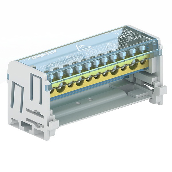 06-09-001 Распределительный блок Tekfor 2-полюсный на DIN-рейку SNK-2-2-07 (5х5,3мм+2х9мм) 100A