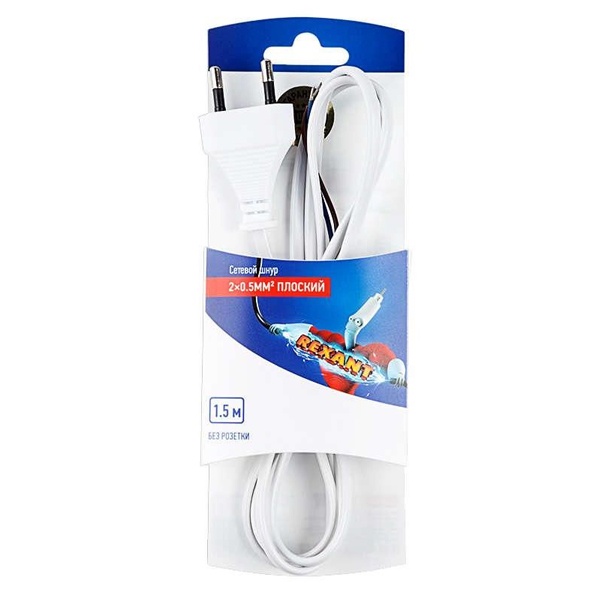 Шнур сетевой 1.5М без розетки 2.5A-220V белый REXANT предназначен для подключения к сети переменного тока (AC) с напряжением 220B электроприборов напрямую (скруткой или клеммным соединителем), без использования розетки. Данный шнур состоит из двухжильного провода с сечением жил 0.5мм2, с одной стороны литой неразборной плоской вилки (Евро), с другой подготовленных (зачищенных и облуженных оловом) проводников и расположенного посередине провода пластикового выключателя.