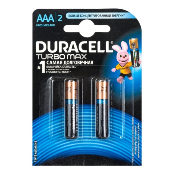 • Батарейка Duracell AAA LR03 MX2400 TURBO MAX (упаковка 2шт)