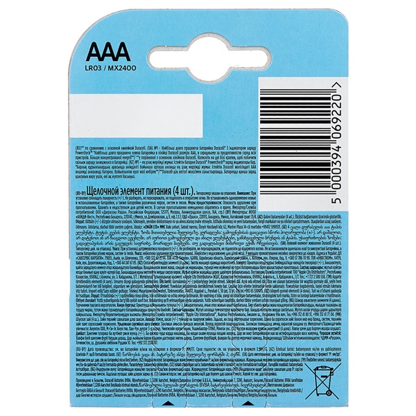 069220 Батарейка Duracell AAA LR03 MX2400 TURBO MAX (упаковка 4шт) фото 2
