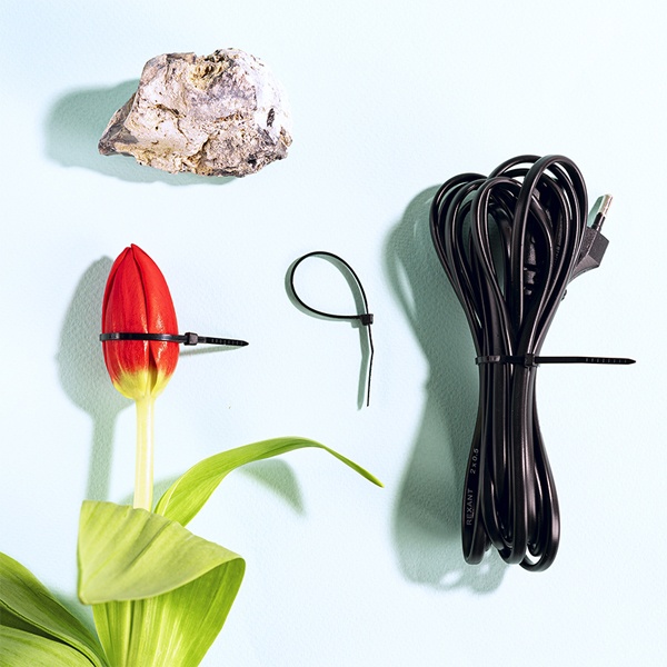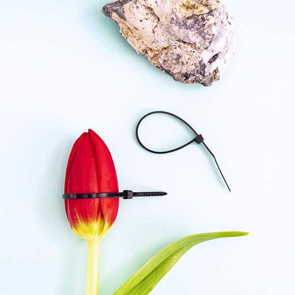 Представляет собой гибкую полоску из нейлона высокой прочности (полиамид-6,6) с замком на конце. Полиамид-6,6 — кристаллизующийся конструкционный материал, имеющий высокую твердость и механическую прочность, отличающийся высокими электроизоляционными свойствами.