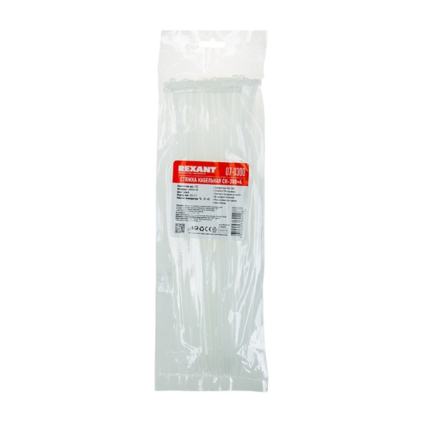 Хомут нейлоновый (кабельная стяжка) 300х3,6 мм белый REXANT предназначен для крепления или обвязки в жгут кабелей и проводов, крепления гибких гофротруб, а также других предметов к несущей поверхности или для соединения между собой. Такая стяжка используется при проведении электромонтажных работ, при монтаже структурированных кабельных систем, для бытовых нужд, а также в других отраслях народного хозяйства.