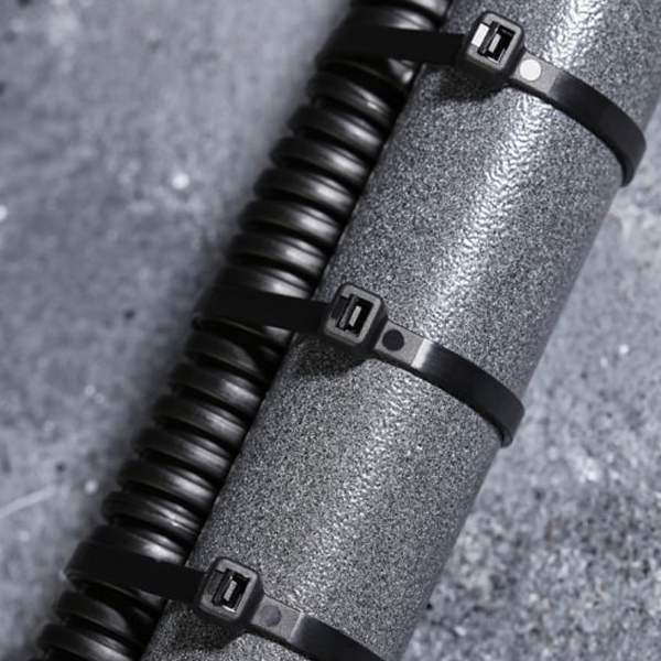 Представляет собой гибкую полоску из нейлона высокой прочности (полиамид-6,6) с замком на конце. Полиамид-6,6 — кристаллизующийся конструкционный материал, имеющий высокую твердость и механическую прочность, отличающийся высокими электроизоляционными свойствами.