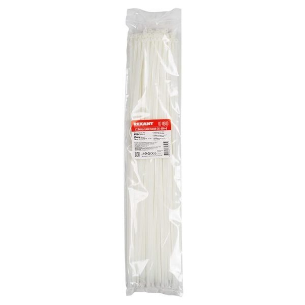 07-0500 Хомут-стяжка кабельная Rexant нейлоновая 500x4,8 мм белая [упаковка 100шт]