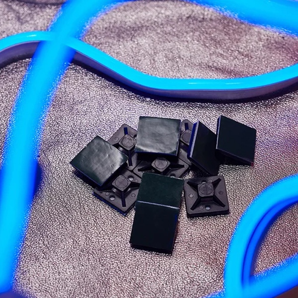 Черный цвет делает крепление менее заметным на темных основаниях и в местах, где важна аккуратная укладка жгутов. Формат 20 х 20 мм оптимален для точечного крепления: площадка занимает минимум места и подходит для организации проводов в ограниченном пространстве.