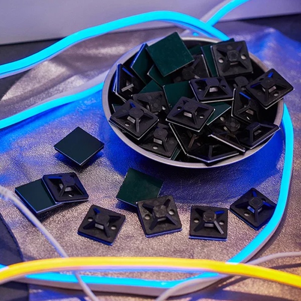 Самоклеящаяся основа облегчает монтаж без необходимости сверления и дополнительного крепежа. Обеспечивает надежное крепление на гладких и чистых поверхностях. Применяется в бытовой и промышленной сфере — для укладки проводов, создания аккуратных кабельных трасс в офисах, жилых и технических помещениях.