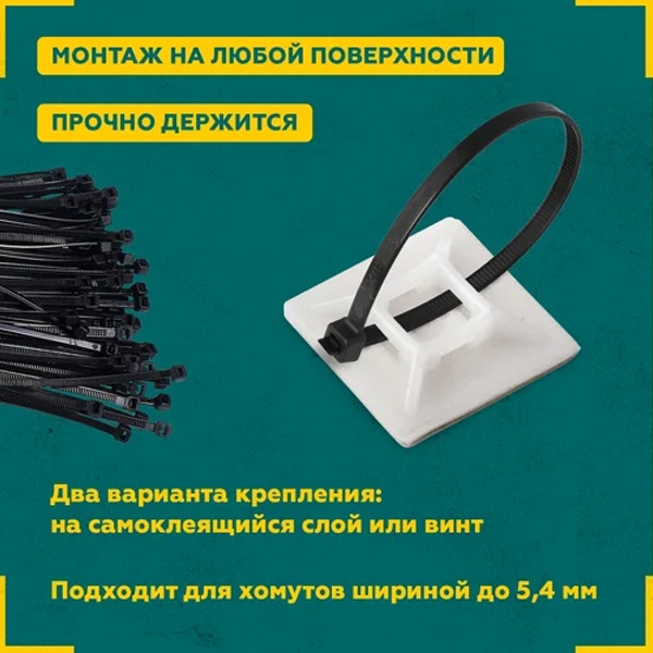 Белая нейлоновая база 28x28 мм с клеевым основанием для хомутов Рексант 100шт 07-2228