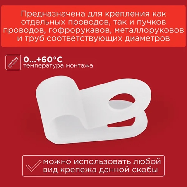 • Кабельная скоба Rexant под винт 5 мм, белая [упаковка 50 шт]