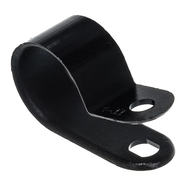 Скоба представляет собой нейлоновую петлю с двумя отверстиями на концах, предназначенными для крепления к поверхности. Благодаря своей форме данный вид крепежа также называют «серьгой» или «клипсой».