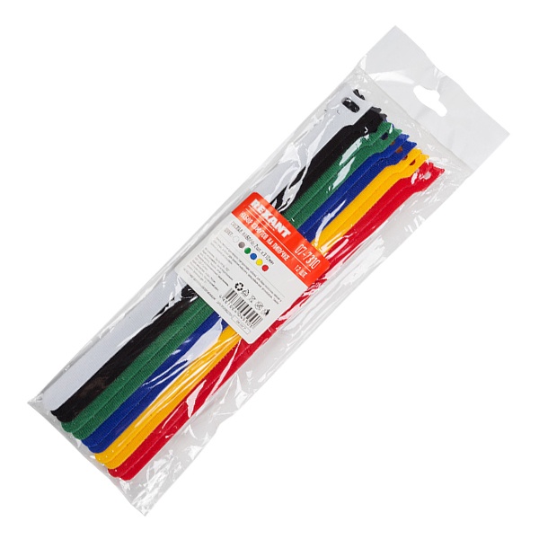 Набор хомутов-стяжек многоразовых на липучке REXANT 310х16 мм, цветная, упаковка 12 шт.