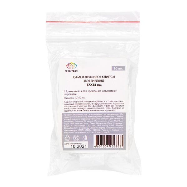 Площадка монтажная самоклеящаяся с клипсой для кабеля применяется для крепления новогодней гирлянды. Одной стороной площадка крепится к поверхности с помощью клеевого слоя, а с другой стороны находится пластиковый крючок для фиксации гирлянды. Размеры 17х12 мм.