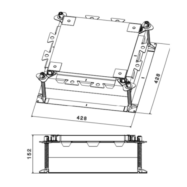 Регулируемая монтажная коробка для лючков Legrand высотой 55-155 мм под заливку бетонных полов. 088080