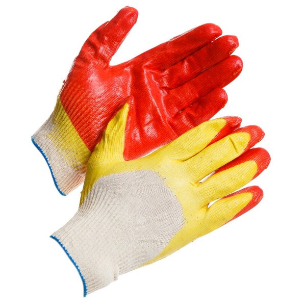 Перчатки хб с рельефным латексным нанесением, применяется в строительстве, ремонтных работах, сельском хозяйстве, химической промышленности. Категория защиты: повышенная стойкость к порезам, высокая степень влагозащиты, надежность при работе со стеклом.