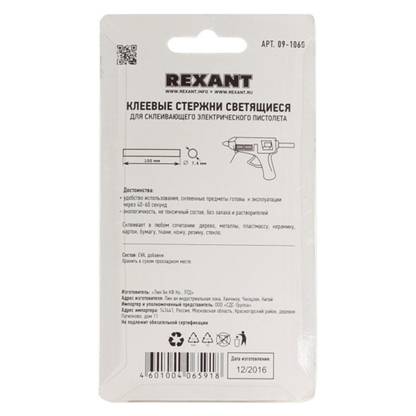 Характеристики по классификатору Etim по данным производителя:Клеевой стержень для клеевого пистолета EC000623