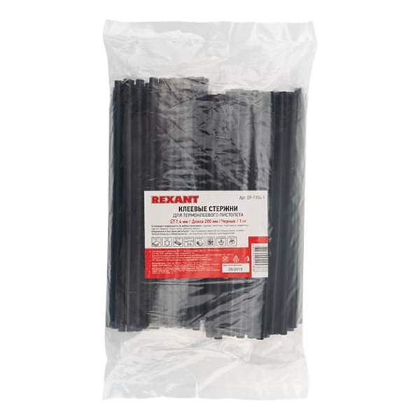 Стержни клеевые REXANT O 7 мм, 200 мм, черные, 1 кг (0.5 кг + 0.5 кг) (пакет)